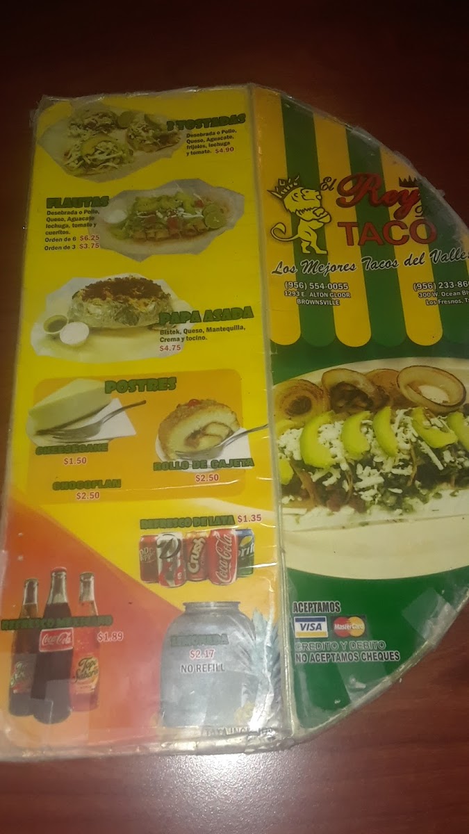 Introducing the menu at El Rey Del Taco Los Fresnos, you’re in for a treat that reflects true Tex-Mex culture. Nestled in Los Fresnos, Texas, this culinary gem offers a delightful array of tacos that have locals and visitors raving. With rave reviews highlighting the exceptional service and friendly staff, it's not just the food that shines—it's the welcoming atmosphere.